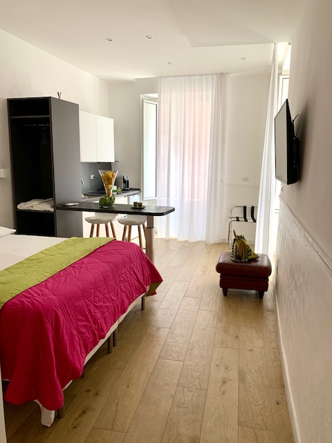 Located at Via Nicola Vischi 2, the studio apartment with its own entrance enjoys the privacy of a home away from home but with the comforts of an accommodation facility. In this flat, you can enjoy the experience of a true Apulian, even cooking tasty recipes. Equipped with two balconies, one equipped with a table and chairs, the studio is located 5 metres from the harbour overlooking via Ognissanti, Trani's medieval street. It offers double or twin accommodation and has a bathroom with a large shower and a fully equipped kitchen.